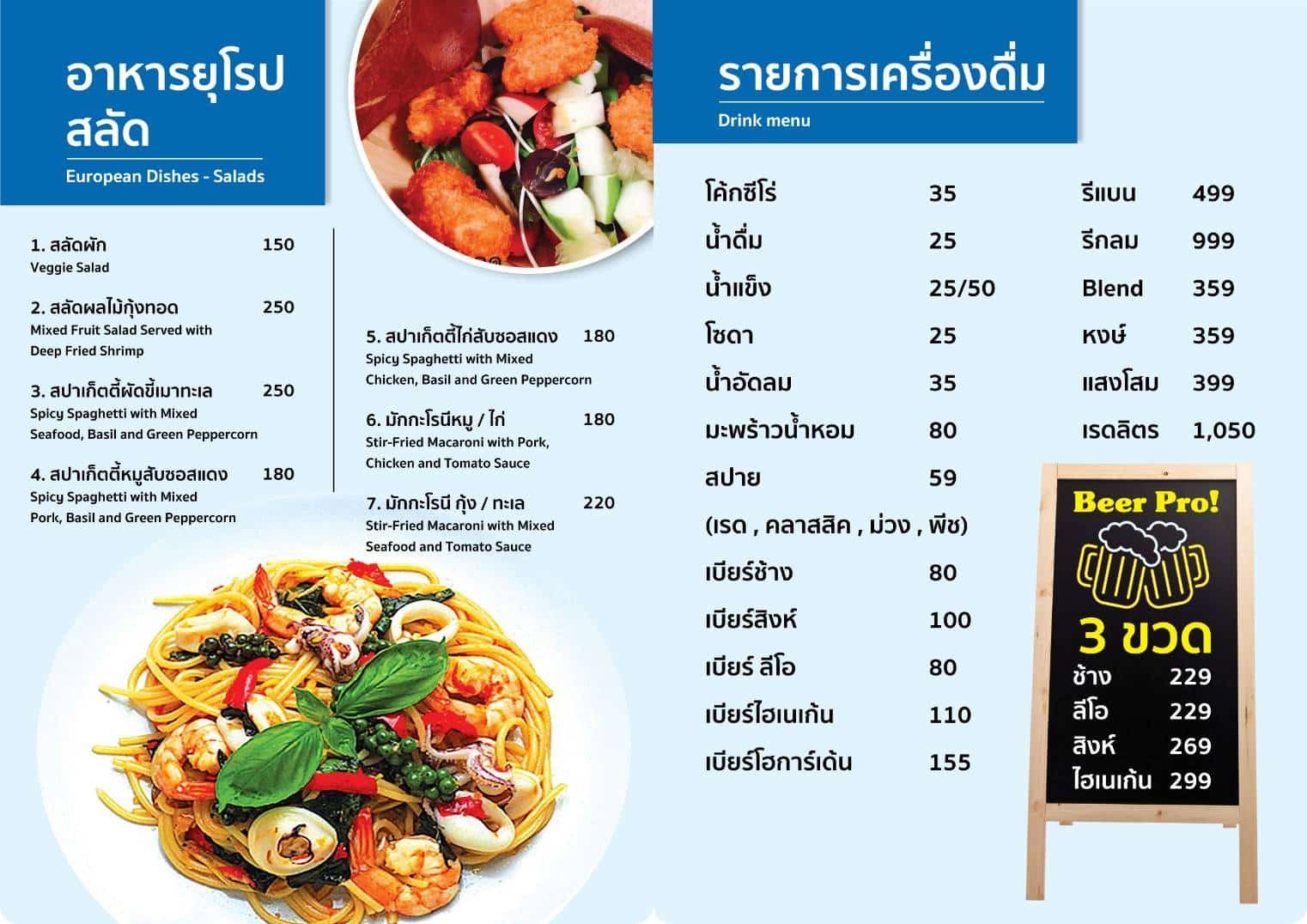มีทั้งน้ำอัดลม น้ำสมุนไพร เบียร์ และเครื่องดื่มแอลกอฮอล์ครบครัน รวมถึง โปรโมชั่นเบียร์ 3 ขวดราคาพิเศษ ที่ลูกค้าประจำชื่นชอบ